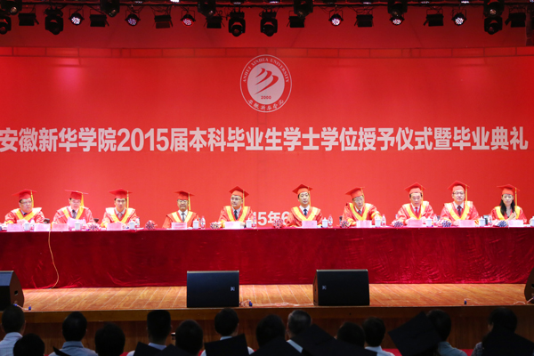 6月29日,安徽新華學(xué)院2015屆本科畢業(yè)生學(xué)士學(xué)位授予儀式暨畢業(yè)典禮在校大禮堂隆重舉行。集團(tuán)公司和學(xué)校領(lǐng)導(dǎo)為部分學(xué)生代表頒發(fā)學(xué)士學(xué)位證書(shū)并扶正流蘇。
